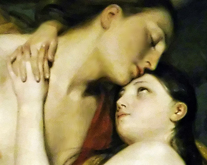 Sin embargo, mis hermanas, consumidas por la envidia, me convencieron de que debía descubrir la verdadera identidad de mi esposo. Me aseguraron que seguramente era un monstruo y que debía protegerme. Una noche, mientras él dormía, tomé una lámpara de aceite y me acerqué a su rostro. Para mi asombro y deleite, descubrí que mi esposo no era una bestia, sino Eros, el dios del amor, hermoso y divino.